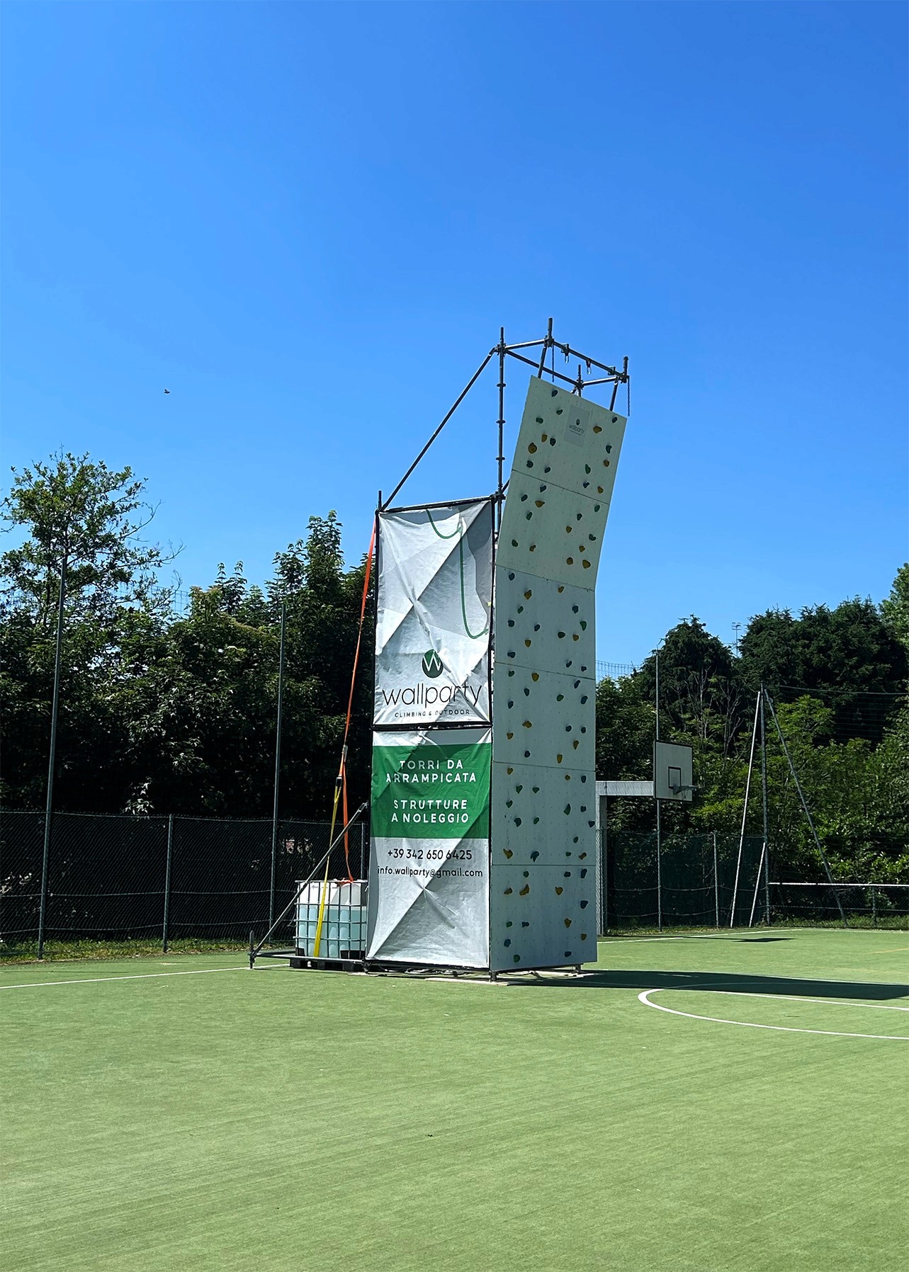 Per la Climbing Tower Lead l'impronta a terra è di 2x4 metri, includiamo poi l'area di lavoro per il nostro team.